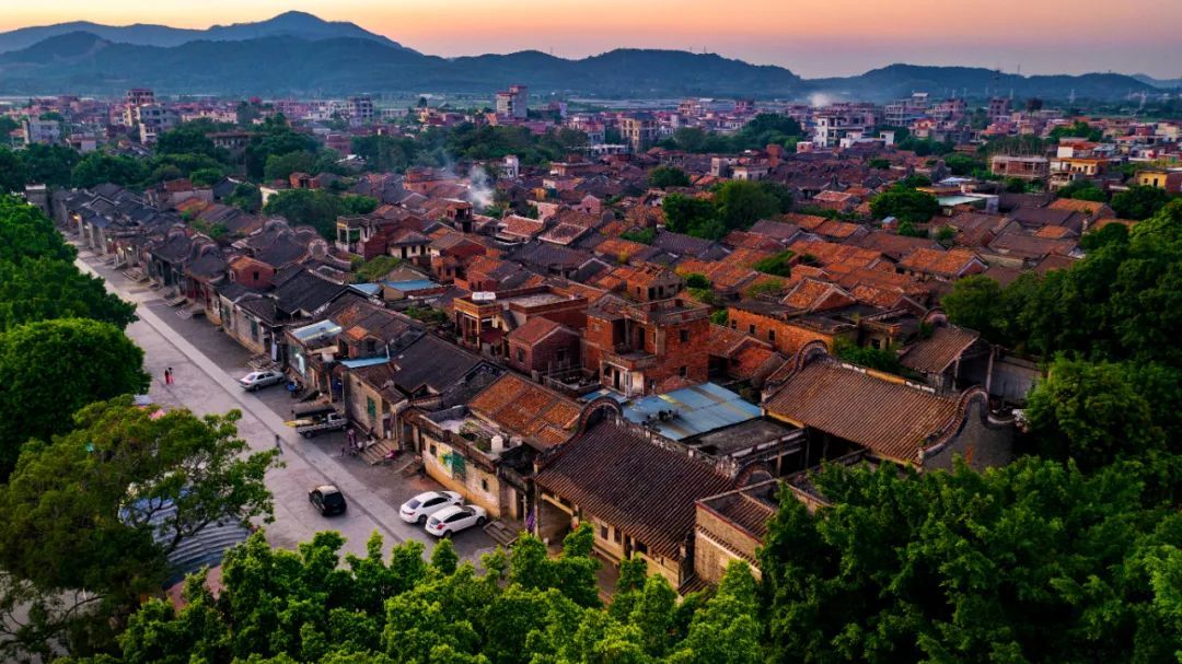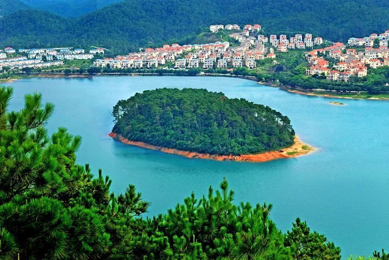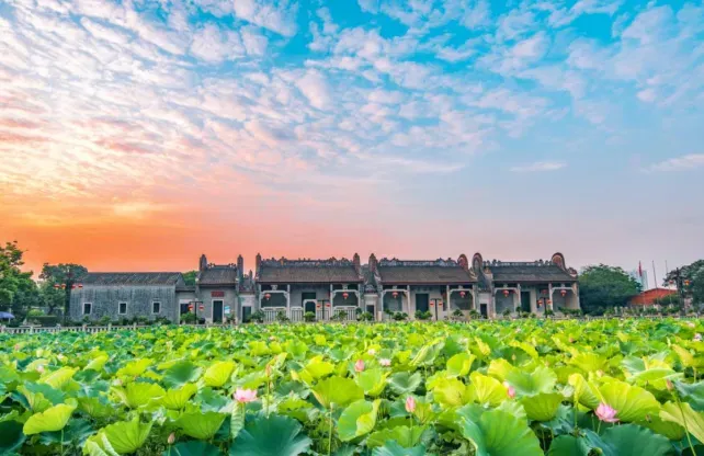 古村塱头寻旧梦,九龙湖畔映霞云。