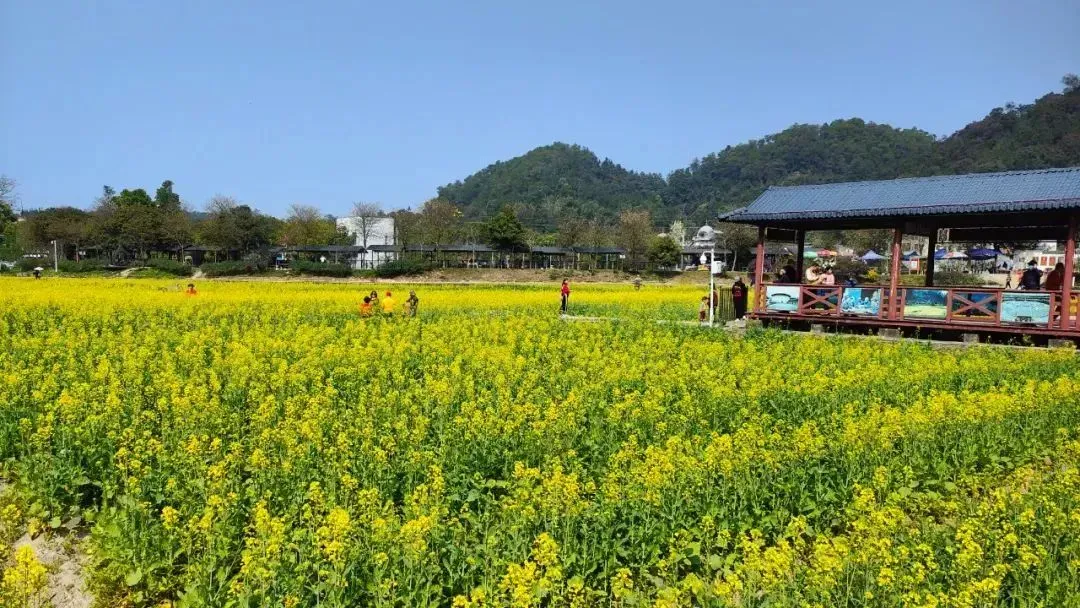 芙蓉嶂上杜鹃艳,梯面田间菜花金。